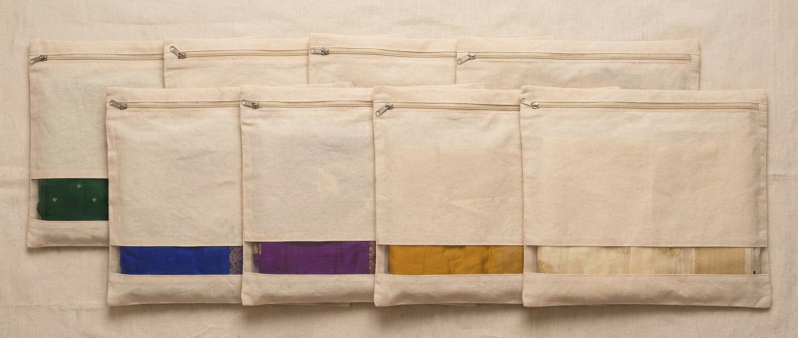 These saree protector bags are made from breathable cotton fabric, suitable for everyday and long-term storage.
